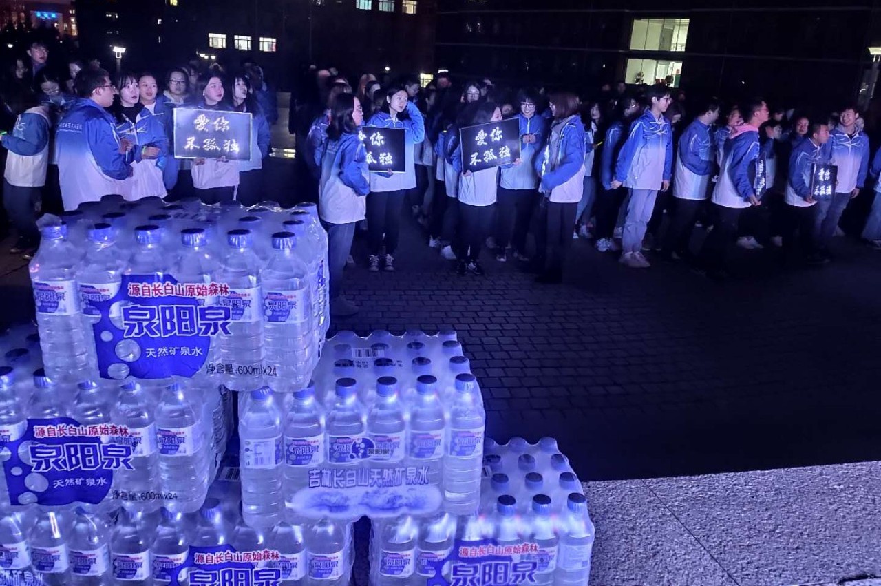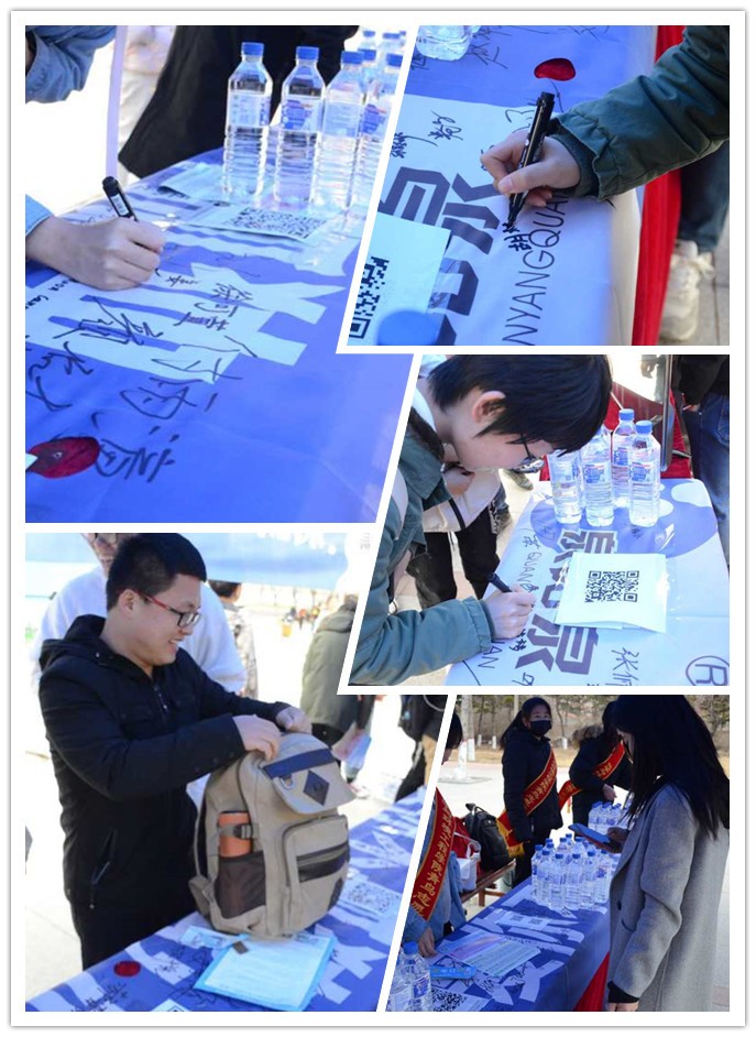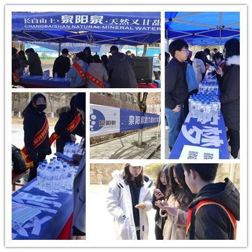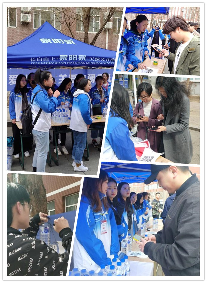 四月的長(zhǎng)春雖已步入了春天,但天氣依舊寒冷,盡管志愿者們凍得瑟瑟發(fā)抖,但每個(gè)成員都積極地參加到活動(dòng)中,將源自長(zhǎng)白山的泉陽(yáng)泉天然礦泉水送至每個(gè)同學(xué)手中。