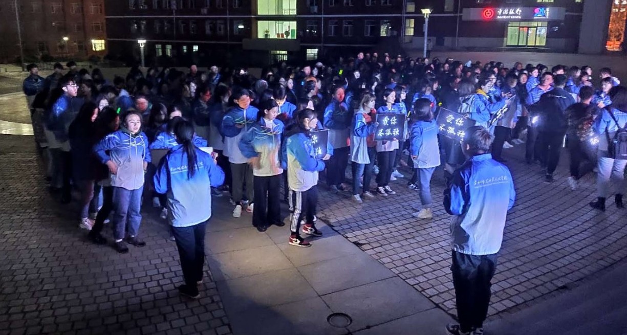 當(dāng)夜幕降臨,同學(xué)們齊聚廣場(chǎng),手持熒光棒,舉行星空夜跑活動(dòng),整個(gè)校園在燈光的映襯下閃閃發(fā)光,同學(xué)們的愛(ài)心在為自己發(fā)聲,也在為每個(gè)自閉癥的兒童發(fā)光發(fā)熱!