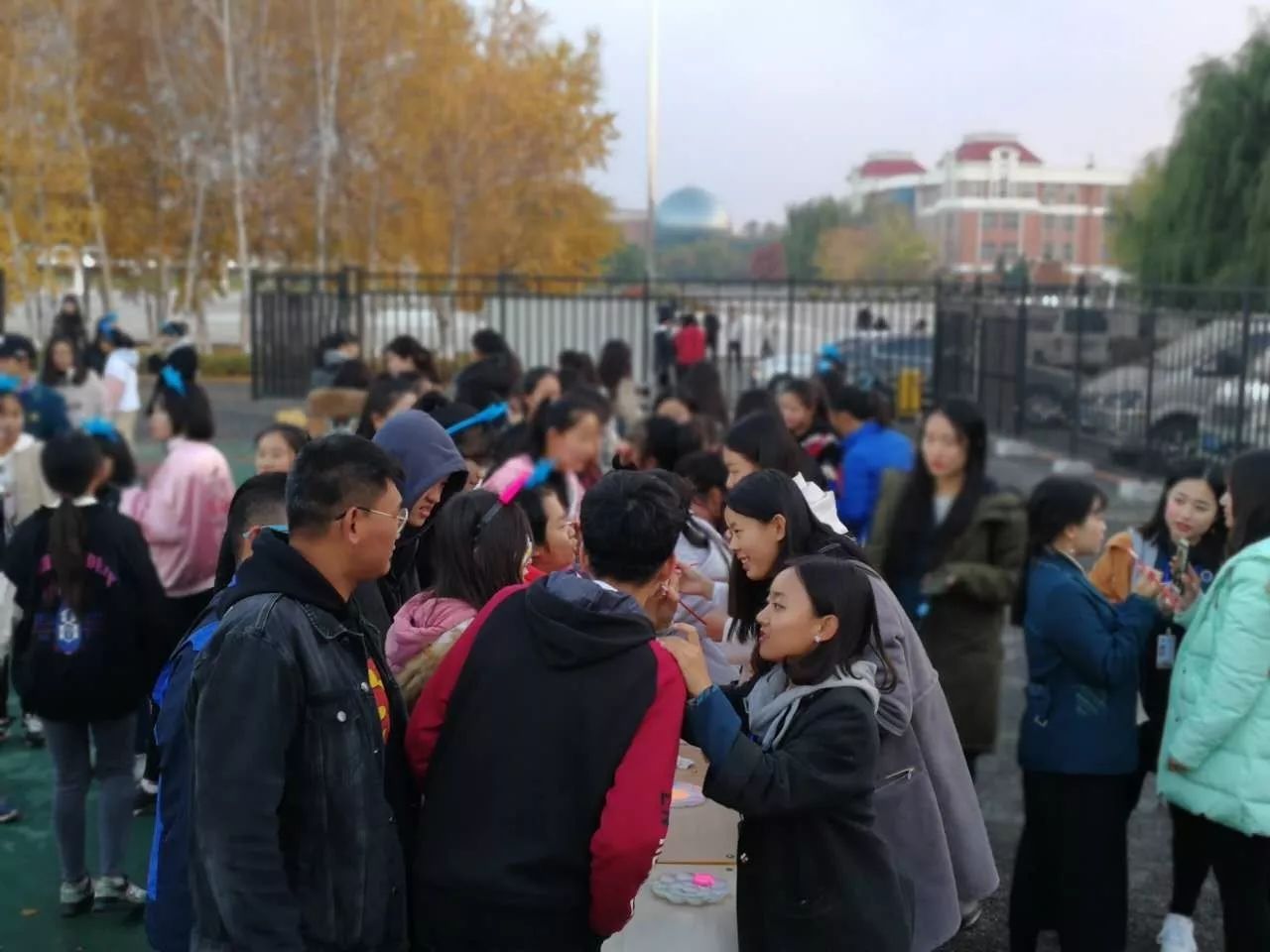 秋風(fēng)蕭瑟中,同學(xué)們早早的到達了活動現(xiàn)場,簽名墻合影留念。