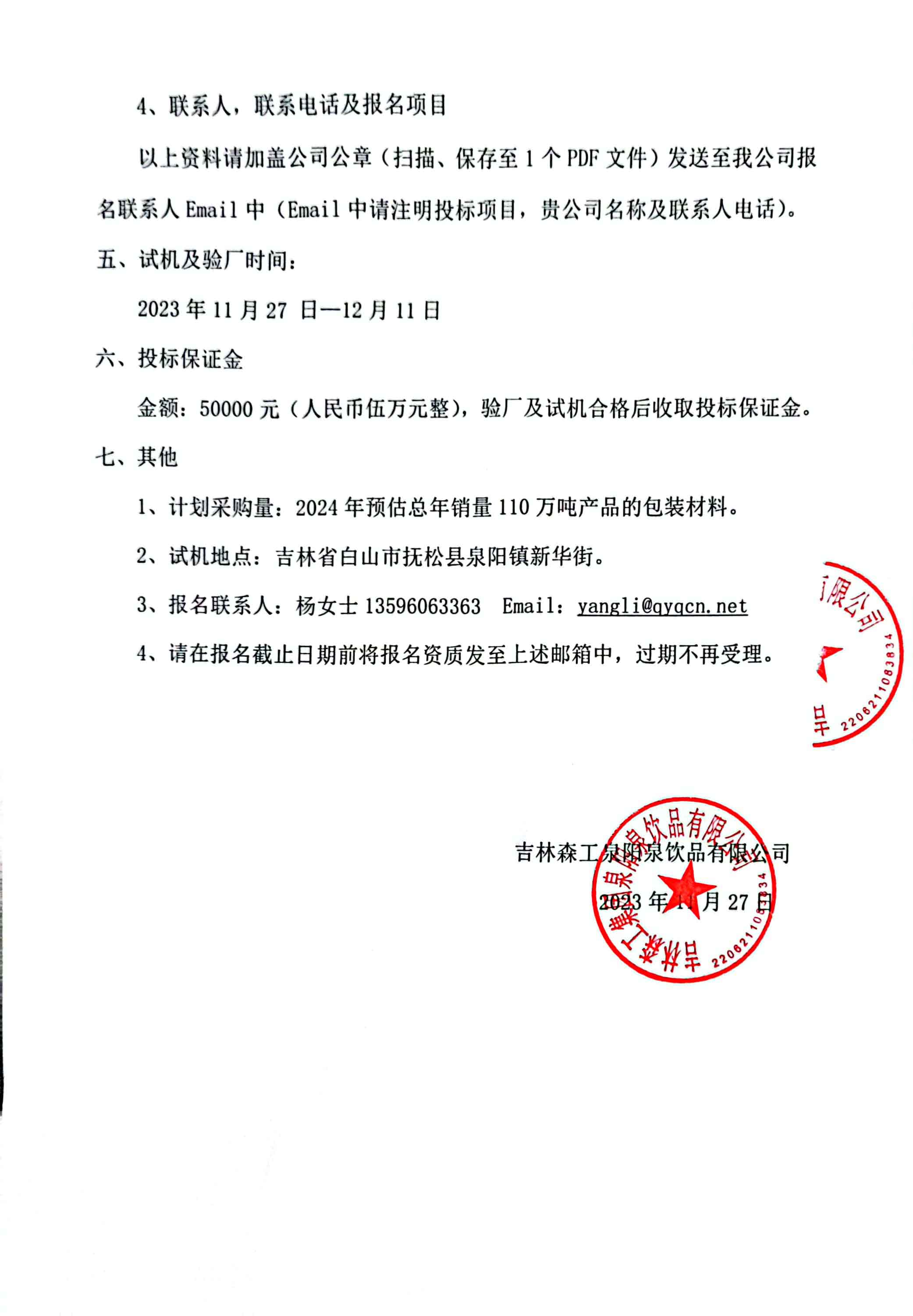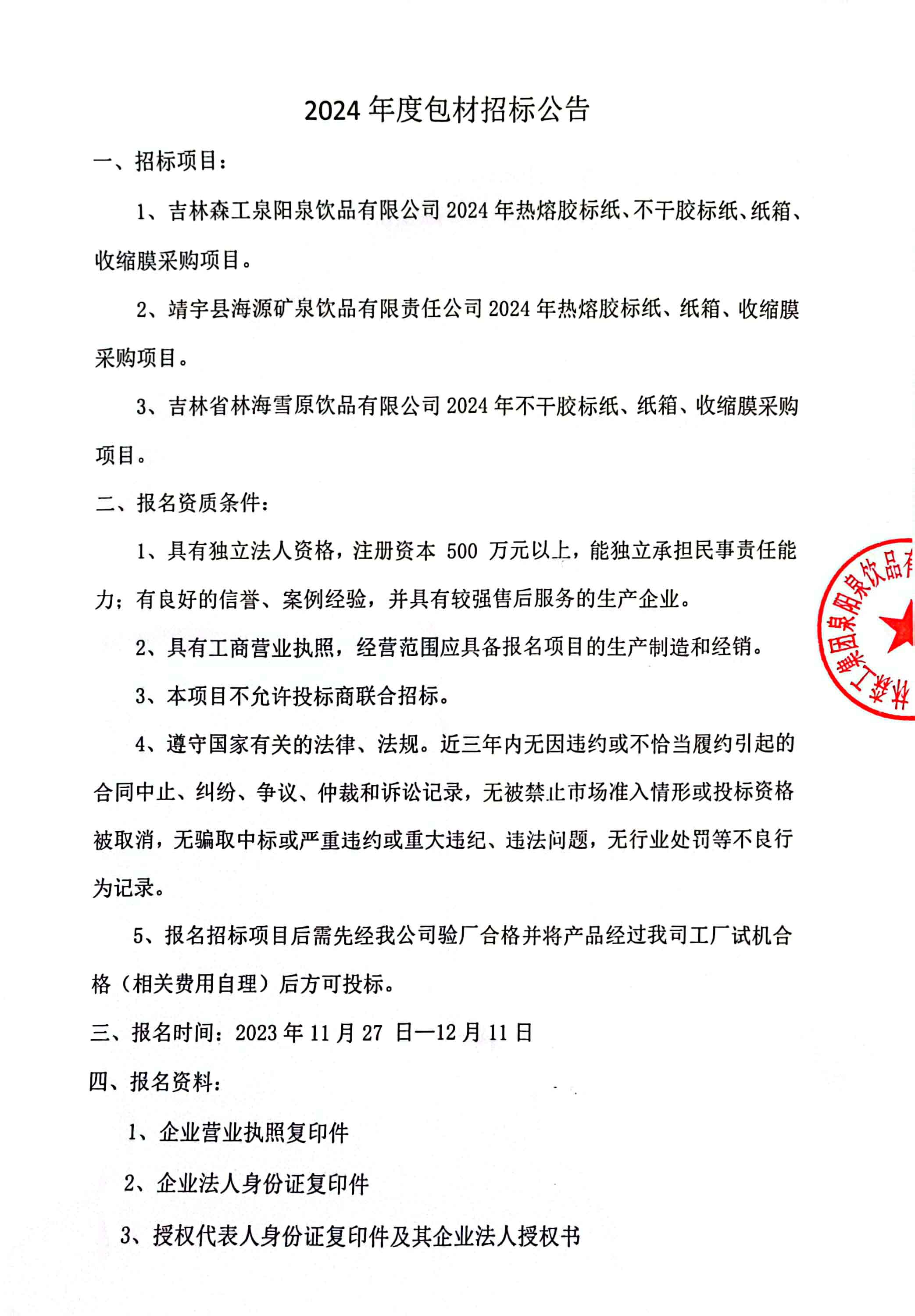 桶裝礦泉水生產(chǎn)線招標(biāo)公告